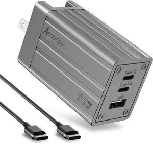 65W Flat USB c Wall Charger Folding Travel Dual Port USB Wall Charger for Laptops Tablets Phones Black (Black-New)