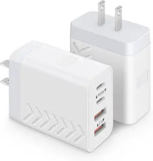 2Pack USB C Charger Block 40W Fast USB C Wall Charger 4-Port PD Power Adapter + QC Wall Plug Multiport Type C Charging Block Cube for iPhone 17 16 15 Pro Max XR XS 8 7 iPad Galaxy Tablet - White