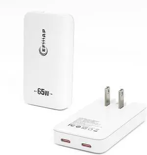 Flat 2-Port USB C Wall Charger 65W Slim Block USB-C Super Fast Charging for iPhone 16/15 Pro Max/ Galaxy Models (White)
