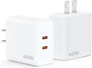 40W USB C Charger Block | 4-Port Fast Charging Blocks (2 USB-C + 2 USB-A) | PD3.0/QC3.0 Compact Wall Charger for i Phone 17/16/15/14/13/12/11/X Galaxy S25/S24/S23/S22 i Pad Air Pods & More (2-Pack)
