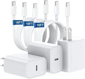 45w PD 3.0 Supper Fast Charger for iPhone 17/16/15 Pro Max Charger Fast Charging 3Pack USB C Charger Block with 10FT USB C Cable for MacBook Pro/air i Phone 17/16 Plus(20v/2.25a 15v/3a 12v 2a)