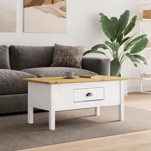 vidaXL Coffee Table Accent Side Table BODO White and Brown Solid Wood Pine