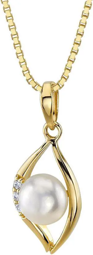 14K Yellow Gold Freshwater Pearl Infinity Swirl Pendant Necklace
