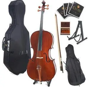Cecilio 4/4 CCO-300 Rosewood Fitted Solid Wood Cello with Hard and Soft Case, Bow, Rosin, Bridge, and Strings (Full Size)