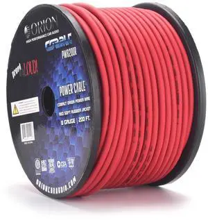 Orion Cobalt PW8200R 8 Gauge Wire (200ft) Copper Clad Aluminum CAA - 100% American Wire Gauge, High Powered Car Audio/Amplifier Power & Ground Cable, Battery Cable, RV Trailer Wiring