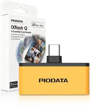 PioData iXflash Q Phone Drive Card Reader USB-C MicroSD Storage with Auto Backup & 60W Passthrough Charging (Black/Yellow)