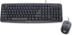 Verbatim Slimline Wired Keyboard and Mouse Combo USB Plug-and-Play Numeric Keypad Adjustable Tilt Legs Optical Corded Mouse Full-Size Computer Keyboard Compatible with PC, Laptop - FFP Packaging Black