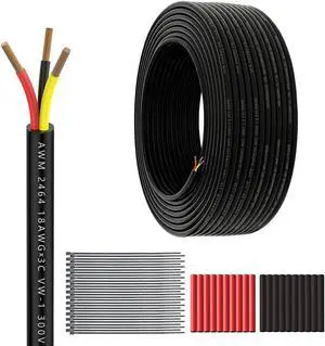 18 Gauge 3 Conductor Electrical Wire 20feet 18/3 Extension Cable UL2464 DC5V/12V/24V/300V 18AWG Stranded Pure Copper Low Voltage Wire for Automotive Lamps Strip Waterproof Outdoor Landscape Wire Wire
