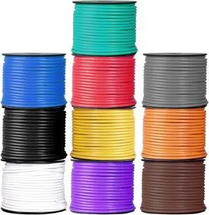 Lonestar 18 Gauge Primary Automotive Wire - 10 Roll Multicolored Assortment Pack - 100 Ft of Copper Clad Aluminum Wire per Roll, 18 Gauge Wire 100 Foot Stranded Copper Clad Aluminium 10 Roll