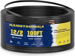 Low Voltage Landscape Wire,12/2 100FT haisstronica Landscape Lighting Copper Wire 12 Gauge 2 Conductor Landscaping Lights Wired Outdoor Direct Burial Electrical Wire