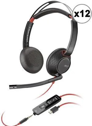 12x Poly Blackwire 5220 Stereo Wired Headset Dual Ear USB-A/USB-C & 3.5mm with Noise-Canceling Boom Mic and Carrying Case