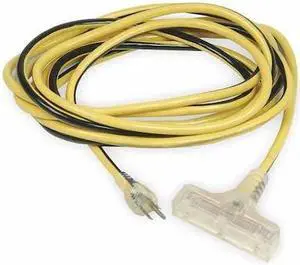 ZORO SELECT 4GAD3 SJTOW Extension Cord, 10 AWG 3 Outlets, 5-15R, Yellow, PVC,