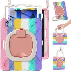 BRAECN Case for iPad Air 11" M3/M2 (2025/2024), iPad Air 10.9" 5th/4th Gen, iPad Pro 11" 1st-4th Gen, Rugged Silicone Cover w/Screen Protector, Pencil Holder, Kickstand, Shoulder Strap, Colorful Pink