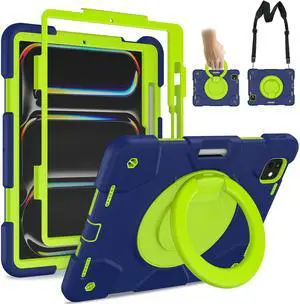 Andnary Case for iPad Pro 11 Inch Case 2024 (M4) 5th Generation, Heavy Duty Shockproof Cover with 360deg Rotating Handle/Bracket/Pen Holder/Shoulder Strap for A2836/A2837/A3006, Navy+Green
