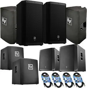 (2) Electro-Voice ZLX-15P-G2 15 1000W Powered Speaker, (2) EV ZLX-15P-G2 Covers, (2) EV ELX200-18SP, (2) EV ELX200-18SP Covers, (4) XLR Cables Bundle