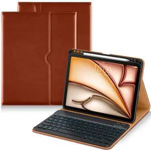 DTTO Keyboard Case for iPad Air 11 Inch M3/M2 2025/2024, iPad Air 5th/4th Generation 10.9-Inch, 7 Colors Backlit Wireless Detachable Folio Keyboard Cover with Pencil Holder & Pocket, Brown