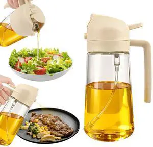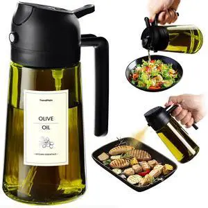 2-in-1 Olive Oil Sprayer for Air Fryer 16oz Glass Oil Dispenser & Cooking Oil Mister Spray & Pour Bottle, Non-Aerosol, Leak-Resistant, for Salad, BBQ, Kitchen