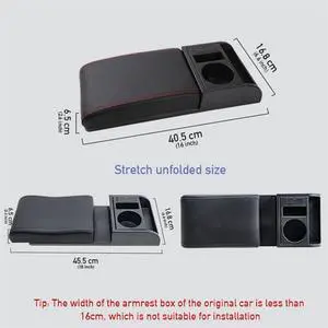 Paiying Adjustable  Car Center Armrest Cover Pad Storage Cup Holder PU Leather