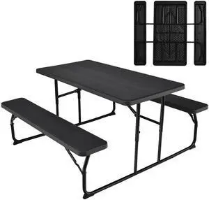 Costway Foldable Picnic Table Bench Set Outdoor Camping for Patio & Backyard Black
