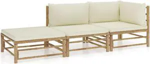 vidaXL Patio Lounge Set 3 Piece with Cream White Cushions Bamboo Garden Seat