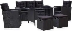 vidaXL Patio Furniture Set 6 Piece Outdoor Sofa and Table Poly Rattan Black
