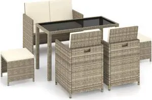 vidaXL Patio Dining Set 6 Piece Table Chair with Cushions Poly Rattan Beige