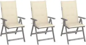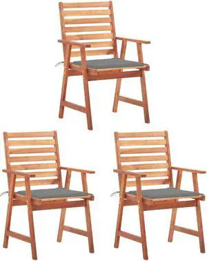 vidaXL Patio Dining Chairs 3 Pcs Outdoor Chair with Cushions Solid Wood Acacia