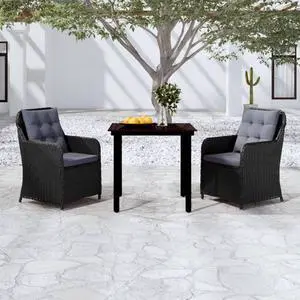 vidaXL Patio Dining Set 3 Piece Black Garden Outdoor Table and Chair Furniture