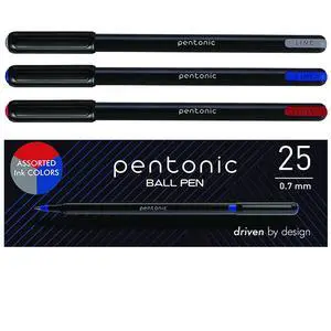 PENTONIC Ballpoint Pen Stick Fine 0.7 mm Assorted Ink Colors Black Barrel 25/Pack PEN12126
