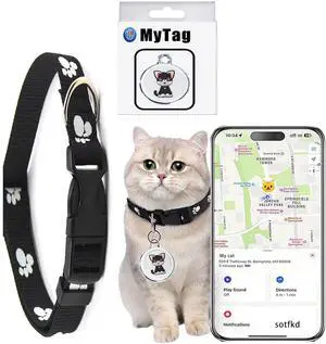 Cat Tracker, MINI GPS Tracker for Cats, No Monthly Fee Pet Tracker Compatible with Apple Find My App(Only iOS), Real-Time Tracking, Smart Alerts, Up to 1-Year Battery, Waterproof