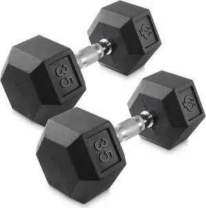 Philosophy Gym Rubber Coated Hex Dumbbell Hand Weights, 35 lb Pair