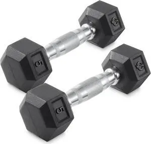 Philosophy Gym Rubber Coated Hex Dumbbell Hand Weights, 5 lb Pair