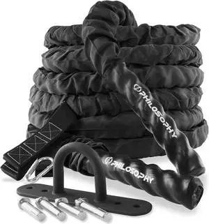 Philosophy Gym 40 Foot Exercise Battle Rope 2 Inch Diameter with Cover and Anchor Kit