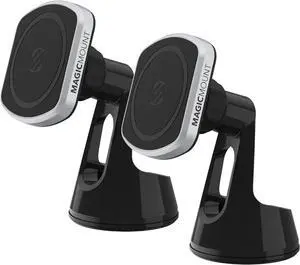 Scosche MP2WD-2PKXC0 MagicMount Pro2 Magnetic Phone Holder, Hands-Free Car Windshield/Dashboard Cell Phone Mount with Suction Cup, Compatible with MagSafe, iPhone, Galaxy, & All Smartphones, Pack of 2