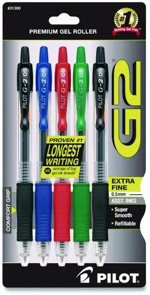 Pilot G2 Roller Gel Pens, Extra Fine Point, 0.5 mm, Assorted, 5/Pack
