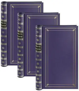 Pioneer Photo Album Bonded Leather 3 Ring Photo Album, Holds 200 4x6" Photos, 2 Per Page, Navy Blue