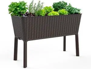 Keter Splendor 31.7 Gallon Raised Garden Bed with Self Watering Planter Box and Drainage Plug-Perfect for Growing Fresh Vegetables, Flowers and Herbs, Brown
