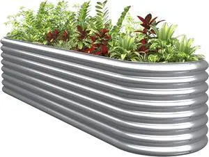 Land Guard 8x4x3ft Oval Galvanized Raised Garden Beds, Large-Capacity Metal Planter Box Outdoor, Durable Deep Raised Garden Bed 3ft Tall, Raised Beds for Gardening Vegetables, Classic Silver