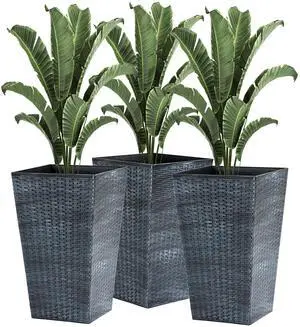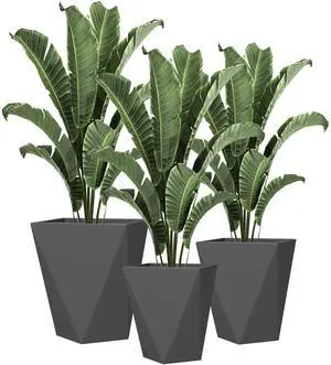 Set of 3 Tall Planters with Drainage Hole, Outdoor Flower Pots, Indoor Planters for Porch, Front Door, Entryway, Patio and Deck, Gray