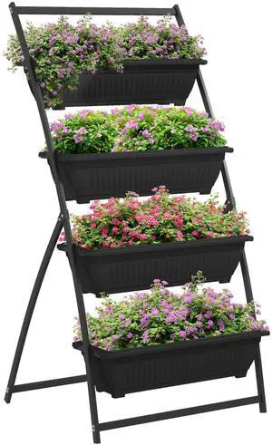 Raised Garden Bed, 4 Tier Vertical Garden Planter Set, 4 Outdoor Planter Boxes with Stand, Self Draining Design Elevated Garden for Vegetable, Flowers & Herbs, Black