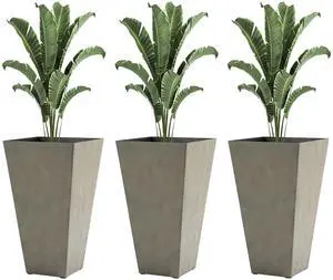 Set of 3 Tall Planters with Drainage Hole, 28" Outdoor Flower Pots, Indoor Planters for Porch Patio and Deck, Gray