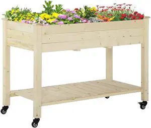 43x18x30in Raised Garden Bed with 8 Pockets and Shelf, Wooden Elevated Planter Box with Legs to Grow Herbs, Vegetables, and Flowers, Natural