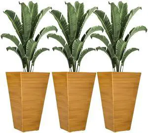 28" Tall Outdoor Planters, Set of 3 Large Taper Planters with Drainage Holes and Plug, Faux Wood Plastic Flower Pots for Outdoor, Indoor, Garden, Patio, Tan