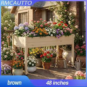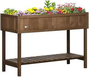 43x18x30in Raised Garden Bed with 8 Pockets and Shelf, Wooden Elevated Planter Box with Legs to Grow Herbs, Vegetables, and Flowers, Dark Brown