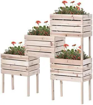 4 Piece Raised Garden Bed with Legs, Self-Watering Planter Box Raised Bed to Grow Flowers, Herbs & Vegetables, Brown
