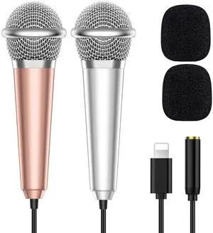 PoP voice 2PCS Mini Microphone for iPhone iPad Small ASMR Tiny Microphone for Video Recording, Singing, Vlogging, YouTube Two Mics Silver and Rose Golden