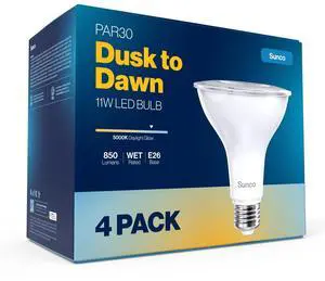4 Pack PAR30 LED Dusk to Dawn Light Bulbs, 850 Lumens, 11W, 5000K Daylight, Non-Dimmable, E26, Wet Rated Outdoor Flood Light Bulb with Photocell Sensor, for Porch, Patio, Backyard, UL- Brand: Westinghouse Electric