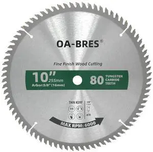 10-Inch Miter/Table Saw Blades, 80-Tooth ATB TCT Fine Finish Wood Cutting Circular Saw Blade with 5/8 Inch Arbor