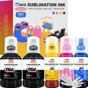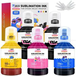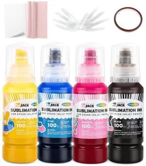 Printers Jack 580ML Sublimation Ink Refilled Bottlescompatible for ET2400 ET2720 ET2760 ET2750 ET4800 ET-2800 ET-2803 ET-2850 Inkjet Printers Heat Press Transfer on Mugs T-Shirts