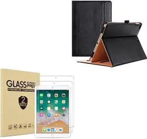 ProCase 2 Pack Screen Protector for 9.7" iPad 6th 5th / iPad Pro 9.7 2016 / iPad Air 2 / iPad Air 1 Bundle with Leather Case for iPad 6th Gen 9.7 Inch 2018/ iPad 5th Generation 2017